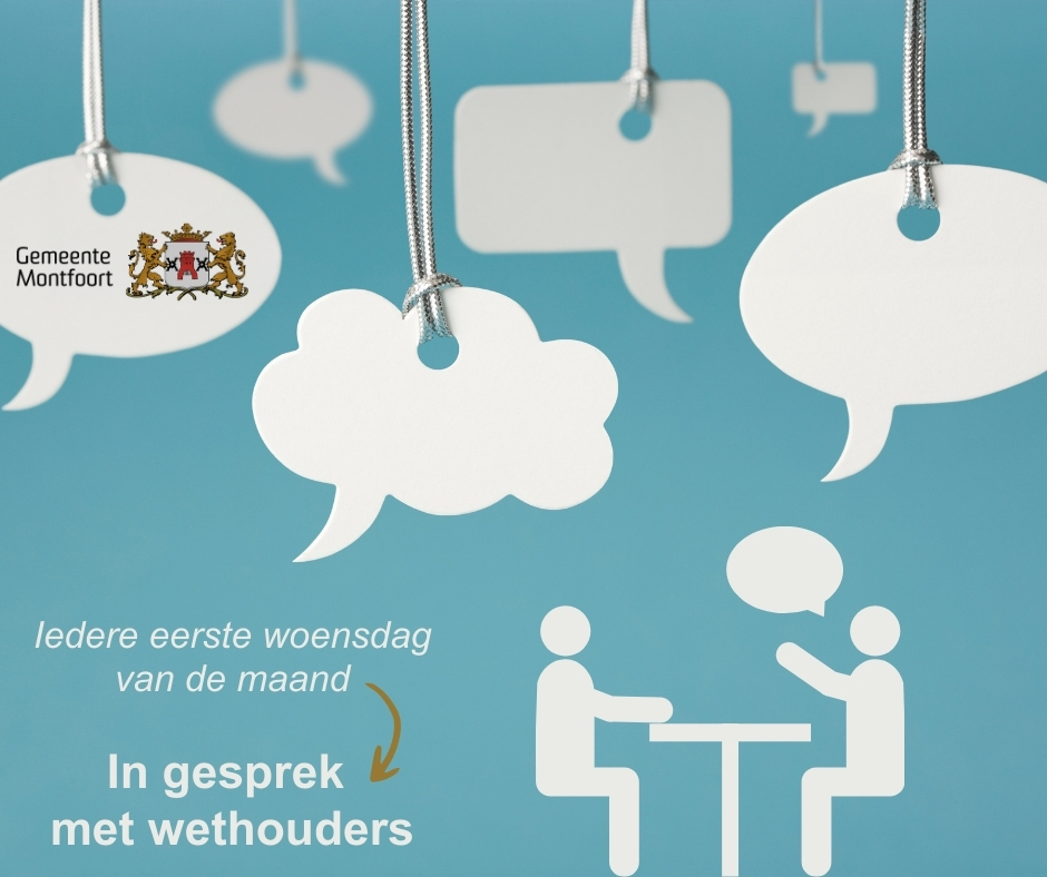 Geplaatst op:24-02-2025 Bijgewerkt op:24-02-2025 18:36 In gesprek met wethoudersBron: Gemeente MontfoortVanaf april houden de wethouders iedere eerste woensdag van de maand een inloopmoment. Heeft u vragen, ideeën of zorgen over uw wijk? Kom dan langs bij het inloopspreekuur van de wethouders. Vanaf april bent u iedere eerste woensdag van de maand van harte welkom om met de wethouders in gesprek te gaan. Waar: Dorpshuis de Vaart in Linschoten en Huis van Montfoort Wanneer: Iedere eerste woensdag van de maand van 14:00 tot 16:00 uur Wethouder AnneMarie van de Poll houdt op donderdag 6 maart een eerste inloopmoment in Linschoten in Dorpshuis de Vaart! U hoeft geen afspraak te maken; loop gewoon binnen. De wethouders luisteren graag naar uw ideeën en zien u graag op het inloopmoment. Let op: De wethouders rouleren per kern. Kijk hier om te zien welke wethouder op welke locatie aanwezig is.