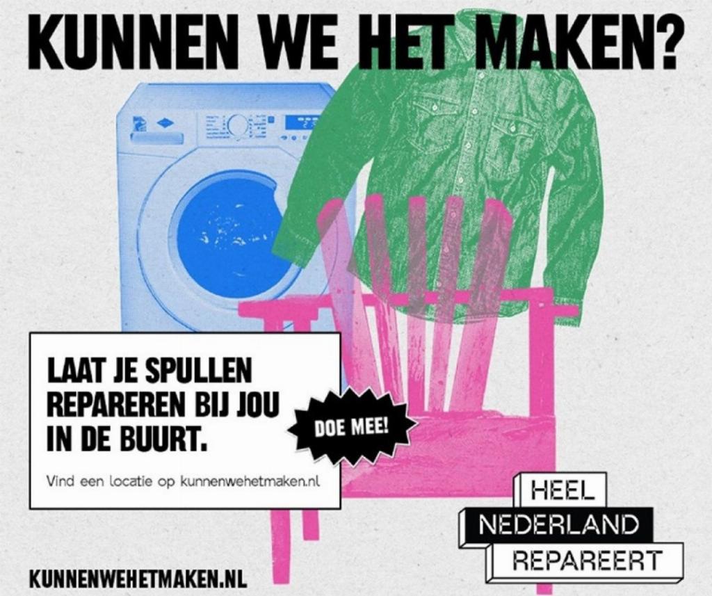 Lokale initiatievenTijdens de campagneweek worden er in heel Nederland verschillende activiteiten georganiseerd. U kunt terecht bij lokale repair cafés, (kringloop)winkels en buurtinitiatieven om kapotte spullen te laten repareren of om zelf nieuwe vaardigheden te leren. Houd voor de dagen en locaties deze pagina en onze socials in de gaten. Daarnaast worden er leuke bijeenkomsten georganiseerd over duurzaamheid en de circulaire economie. Want uiteindelijk moeten we het ook zelf doen. Daarom luidt de slogan ‘Kunnen we het maken? Nou en of!’.