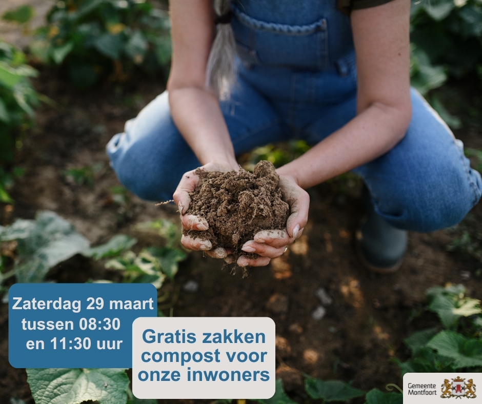 Geplaatst op:25-03-2025 Bijgewerkt op:25-03-2025 16:45 Gratis compost ophalenBron: Gemeente MontfoortZaterdag 29 maart is het Landelijke Compostdag en delen we gratis zakken compost uit. U kunt tussen 08:30 en 11:30 uur twee zakken compost ophalen bij de Gemeentewerf in Montfoort en op de parkeerplaats achter Sporthal de Vaart in Linschoten. Deze actie is alleen voor inwoners van de gemeente Montfoort en maximaal 2 zakken compost per huishouden. Het aantal zakken is beperkt, dus op is op.