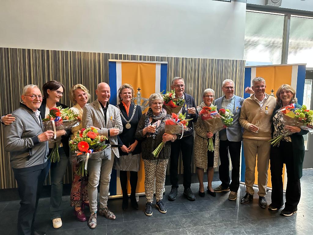 “Zo’n onderscheiding krijg je niet zomaar,” vertelde Burgemeester Van Hartskamp, die er trots op is deze vrijwilligers in het zonnetje te kunnen zetten. Het gaat om inwoners die zich op een bijzondere manier en vooral vele jaren hebben ingezet voor onze gemeente. De verdiensten liggen op maatschappelijk, kerkelijk, cultureel of sportief terrein. De volgende inwoners ontvingen een Koninklijke onderscheiding: