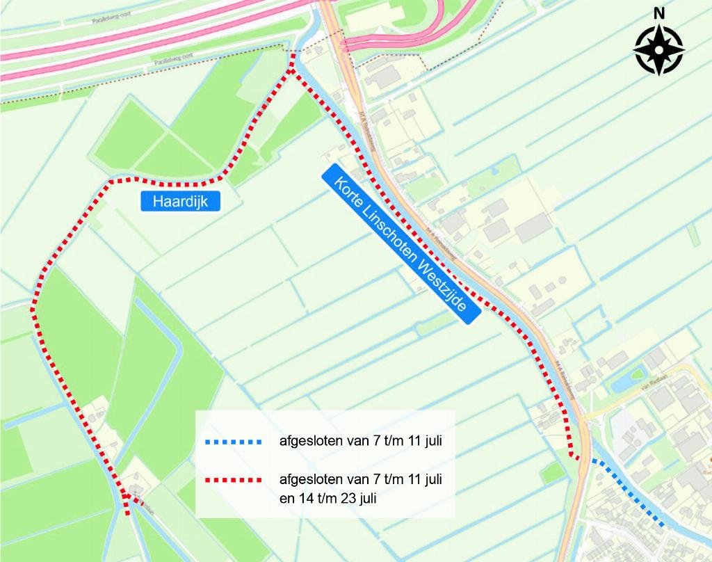Geplaatst op:04-07-2025 Bijgewerkt op:04-07-2025 08:46 Werkzaamheden Haardijk en Korte Linschoten WestzijdeBron: Gemeente MontfoortTussen maandag 7 en vrijdag 23 juli vinden werkzaamheden plaats aan de Haardijk en Korte Linschoten Westzijde in Linschoten. Aannemer Versluys & Zoon B.V. brengt in opdracht van ons een nieuwe asfaltdeklaag aan en vult de bermen aan. Tijdens deze werkzaamheden zijn de wegen afgesloten voor doorgaand verkeer. Wanneer en waar? Het werk wordt uitgevoerd op twee locaties. Het oostelijke gebied gaat over de Korte Linschoten Westzijde, tussen de kruising van de Berkenlaan en N204 (op de kaart aangegeven in blauw). Deze weg is afgesloten van maandag 7 juli tot en met vrijdag 11 juli. Het westelijke gebied betreft: Korte Linschoten Westzijde vanaf de N204 tot de aansluiting op de Kromwijkerdijk en Haardijk tot en met de kruising met de Schapenlaan. Dit is op de kaart aangegeven in rood en is afgesloten van maandag 7 tot en met vrijdag 11 juli en van maandag 14 tot en met vrijdag 23 juli. In het weekend worden de wegen opengesteld voor verkeer. Verkeer tijdens de werkzaamheden Tijdens de werkzaamheden zijn de wegen afgesloten voor al het verkeer. Bij calamiteiten krijgen de nood- en hulpdiensten altijd een vrije en snelle doorgang. Er worden verkeersregelaars ter plaatse ingezet. Bij onvoorziene omstandigheden, zoals het weer, kan het nodig zijn om het werk uit te stellen naar een later moment.