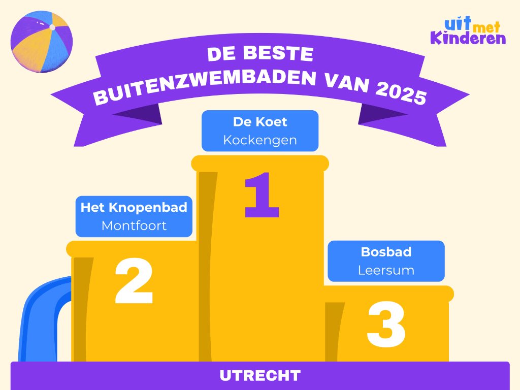 Geplaatst op:15-08-2025 Bijgewerkt op:15-08-2025 08:07 Beste buitenzwembaden van UtrechtBron: Uit Met KinderenHet lijkt deze week dan toch nog écht zomer te worden. Een goede reden om een verfrissende duik te nemen. Zwem- en Recreatiepark De Koet in Kockengen is door uitjeswebsite UitMetKinderen.nl uitgeroepen tot het beste buitenbad van de provincie Utrecht. Maar laten we niet vergeten dat Het Knopenbad bij onze buren in Montfoort, een prachtige tweede plek wist te veroveren.