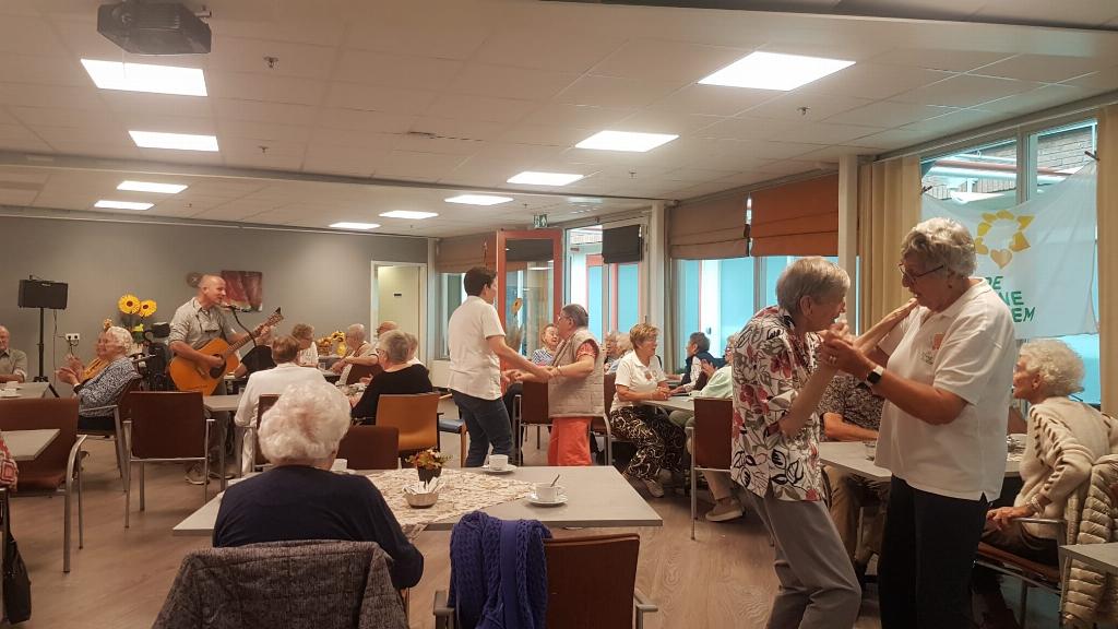 De middag werd muzikaal omlijst door Troubadour Rop, die diverse liedjes uit de oude doos ten gehore bracht. Er werd meegezongen, geklapt en sommige gasten waagden zich aan een dansje.Halverwege de middag werden twee vrijwilligers in het zonnetje gezet vanwege hun 10-jarig jubileum, te weten Agatha Steenbergen en Jopie Zwamborn. Een derde vrijwilliger, Nel van Vliet die ook jubileert kon niet aanwezig zijn, maar zal op een ander moment in het zonnetje gezet worden.