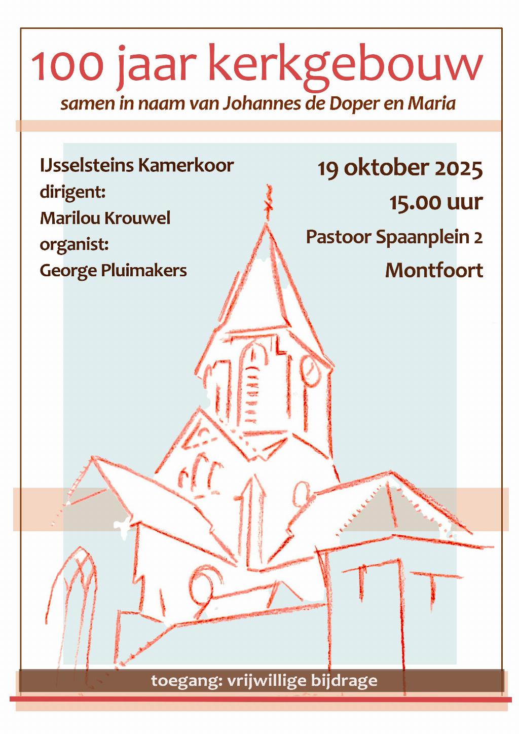 Geplaatst op:02-10-2025 Bijgewerkt op:02-10-2025 16:32 Zondagmiddag 19 Oktober IJsselsteinskamerkoorBron: Sjaak SpruijtZondagmiddag 19 Oktober IJsselsteinskamerkoor Ter ere van het 100-jarig jubileum van ons kerkgebouw geeft het IJsselsteinskamerkoor (IJKK) een bijzonder concert. het concert start 15:00 uur. Het koor, opgericht in 1981, heeft inmiddels een stevige plek in het muzikale leven van IJsselstein en omstreken. Regelmatig treedt het op in kerken en in het Historische Stadhuis, en ook het jaarlijkse zomerse tuinconcert is een geliefde traditie. Het IJKK bestaat uit ervaren amateurzangers die wekelijks op donderdagavond repeteren in het Fulco Theater. Sinds 2017 staat het koor onder de inspirerende leiding van dirigent Marilou Krouwel. Op het programma: - Nederlandse koormuziek van onder anderen Wouter van Belle, Albert de Klerk en Herman Strategier