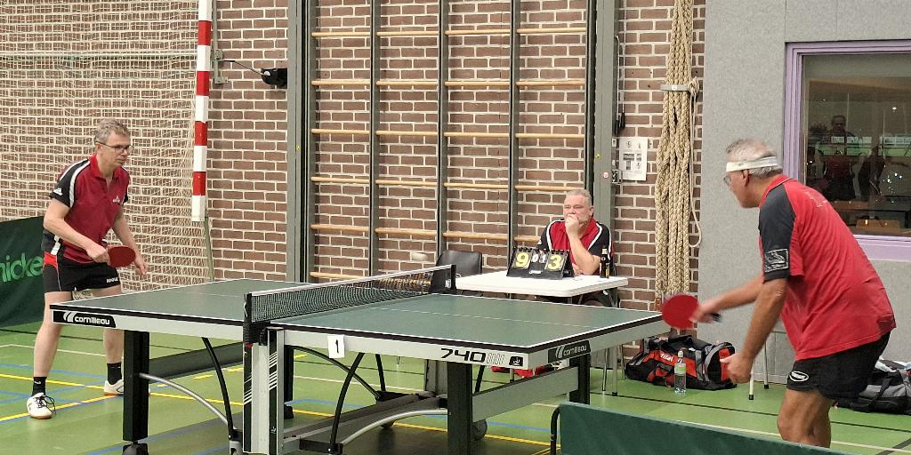 Geplaatst op:30-01-2026 Bijgewerkt op:30-01-2026 11:52 Verslag clubkampioenschappen TTV de Schans 15 januariBron: Leo van PaasenDe jaarlijkse clubkampioenschappen van tafeltennisvereniging TTV de Schans vonden plaats op donderdag 15 januari. Dit jaar was er voor het eerst ook een poule voor de OldStars waaraan 6 personen deelnamen. Winnaar hiervan werd Fred Zwinkels, de 2e plaats was voor Ton van Rhenen. Van de Recreanten B was het na een hevige strijd tussen Pascal Peeters en Hans Jager, de winnaar van vorig jaar, uiteindelijk Pascal Peeters die aan het langste eind trok. De strijd bij de Recreanten A werd in het voordeel beslist voor Henk van der Does, hij wist in de finale de vorige winnaar Gijsbert Klein te verslaan die daarmee dus 2e werd. In de competitie B werd Michiel Zijlstra winnaar van de finalestrijd met ons opkomend talent Emiel Timmerarends die daarmee 2e werd. Dit zou volgend jaar wel eens anders kunnen zijn! Voor de Competitie A won Frank Sangers al zijn partijen en is daarmee tevens de nieuwe Algemeen Clubkampioen van TTV de Schans 2026! Bij de prijsuitreiking in de kantine werden voor de Competitie A en de Recreanten A ook de wisselbekers overhandigd die weer een jaar lang bij de nieuwe winnaars mogen verblijven. Alle winnaars gefeliciteerd met de behaalde prestatie! Links de latere clubkampioen Franks Sangers in actie tegen Kees de Kamper.
