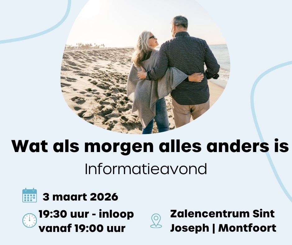 Geplaatst op:17-02-2026 Bijgewerkt op:17-02-2026 12:00 Wat als morgen alles anders is!Bron: Persbericht SWOMPersbericht Montfoort, 11:55 Wat als morgen alles anders is! Het zelfgekozen levenseinde is ingewikkeld. Laten we er samen meer over leren en ontdekken. Juist daarom organiseren ontmoetingscentrum ’t Bakkershuis en Steunpunt Mantelzorg op dinsdagavond 3 maart een informatieavond over dit onderwerp. Deze bijeenkomst vindt plaats in zalencentrum Sint Joseph in Montfoort en begint om 19.30 uur. U kunt vanaf 19.00 uur binnen lopen. De toegang is gratis. Deze avond is bedoeld voor alle inwoners van Montfoort en Linschoten, van jong tot oud. Want wat als morgen alles anders is betreft niet alleen ouderen. Vragen die leven Veel mensen lopen rond met vragen over het levenseinde. Bijvoorbeeld: wat kan ik vastleggen voor nu of later? Wat mag wel en wat niet? Wanneer is euthanasie mogelijk? Hoe verloopt een euthanasieprocedure stap voor stap? En wanneer is het een goed moment om dit gesprek aan te gaan met de huisarts? Ook wilsverklaringen en andere keuzes rond het levenseinde zorgen vaak voor onzekerheid. Heldere uitleg en betrouwbare informatie Joke Kranenburg, voorlichter van de Nederlandse Vereniging voor een Vrijwillig Levenseinde (NVVE) is deze avond bij ons te gast. Zij neemt u stap voor stap mee langs de mogelijkheden en legt ingewikkelde onderwerpen helder uit.. Daarnaast is er ruimte voor vragen in een open en veilige sfeer. Zo helpt de NVVE mensen om bewuste keuzes te maken over hun levenseinde. “Veel mensen stellen vragen over het levenseinde uit. Maar juist door er samen over te praten, ontstaat overzicht en rust – voor uzelf en voor de mensen om u heen,” zegt Joke Kranenburg, NVVE-voorlichter. Kom luisteren en stel uw vragen Kortom, wilt u meer weten over het zelfgekozen levenseinde, voor uzelf of voor iemand die u dierbaar is? Kom dan op dinsdagavond 3 maart naar zalencentrum Sint Joseph in Montfoort. Aanmelden is niet nodig. U kunt gewoon binnenlopen, luisteren en uw vragen stellen. U bent van harte welkom.