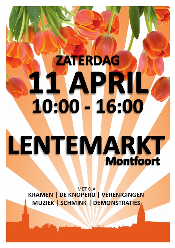 Geplaatst op:03-04-2026 Bijgewerkt op:03-04-2026 07:38 Lentemarkt in Montfoort 11 april 2026Bron: Dynamic PromotionsLentemarkt in Montfoort Op zaterdag 11 april is het weer tijd voor de Lentemarkt. Tussen 10.00 uur en 16.00 uur vind je allerlei leuke activiteiten in de winkelstraten van Montfoort. Verschillende verenigingen promoten zichzelf door middel van leuke acties en demonstraties. Denk aan het Knopenbad; deze verkoopt eendjes voor de traditionele badeendjesrace op 2 mei, bij de polstokclub mag je zelf proberen in de paal proberen te klimmen en de proeftuin legt je graag uit hoe dit werkt. Naast de verenigingen doen er natuurlijk ook winkeliers mee aan de lentemarkt. Zij hebben mooie producten en leuke koopjes die je niet wilt missen. En daarnaast vind je nog allerlei standhouders van buiten Montfoort. Al met al een fijne combinatie om te ontdekken! Een tijger, een prinses of een superheld? De VOM kan het regelen! De helden van de VOM zijn aanwezig op de markt om jou te schminken. Kom je ook? De lentemarkt wordt gehouden in de Hoogstraat, Keizerstraat en het eerste gedeelte van de Hofstraat, aan de kant van het oude stadhuis. Natuurlijk horen de horeca op de Plaats, bij Het Oude stadhuis en de Heeren van Montfoort ook bij het circuit. Hier kan je heerlijk genieten op het terras. Deze gaan na 16.00 uur ook nog door. We nodigen je uit om deze leuke lentemarkt te bezoeken en te genieten van al dat moois Montfoort te bieden heeft! .jpg)